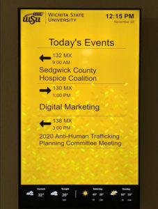 ATLANTA, GA – April 14, 2022 – Visix, Inc. adds another higher education project to its portfolio with the news that Wichita State University has adopted an AxisTV Signage Suite digital signage system for its Metroplex conference center. The complete solution brings together a cloud-hosted CMS with three Nano digital signage players and ten Electronic Paper Room (E-Paper) Signs, the latter of which dynamically display events and meetings as they occur.