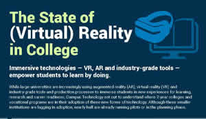 While institutions identify numerous benefits of VR, AR, and industry-grade tools, only 32 percent have implemented these immersive technologies – and, 22 percent say that they are not planning on implementing them at all. This may be because 2-year and 4-year colleges face several challenges when attempting to put virtual and augmented reality into place, including a lack of funding, a lack of training, and/or a lack of space. Download this infographic from Dell Technologies and Intel® to learn how colleges are addressing these obstacles and incorporating AR/VR on their campuses.